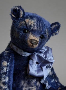 Crafted using traditional techniques, from fine, gently aged German mohair, wool felt and linens, I aim to create teddy bears with the suggestion of an old soul. All of the bears have glass or antique boot button eyes and hand painted detail is applied to their faces for added appeal. My aim is to create a gentle, knowing expression, and inevitably a bear which over time has their own story to tell. As with the teddy bears of yesteryear, my creations have hand embroidered noses and claws. They are loosely jointed and filled mainly with wood wool for that "old bear feel", steel granules are added to their tummies, paws and toes and for a reassuring weighty feel.